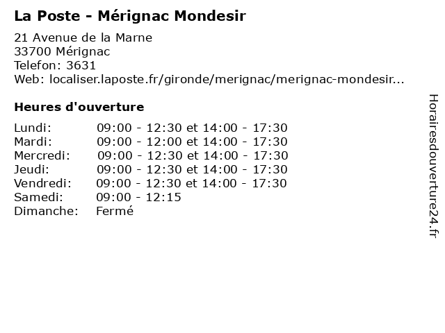 Horaires et heures limites de dépôt de votre bureau de poste merignac le burck 33700.